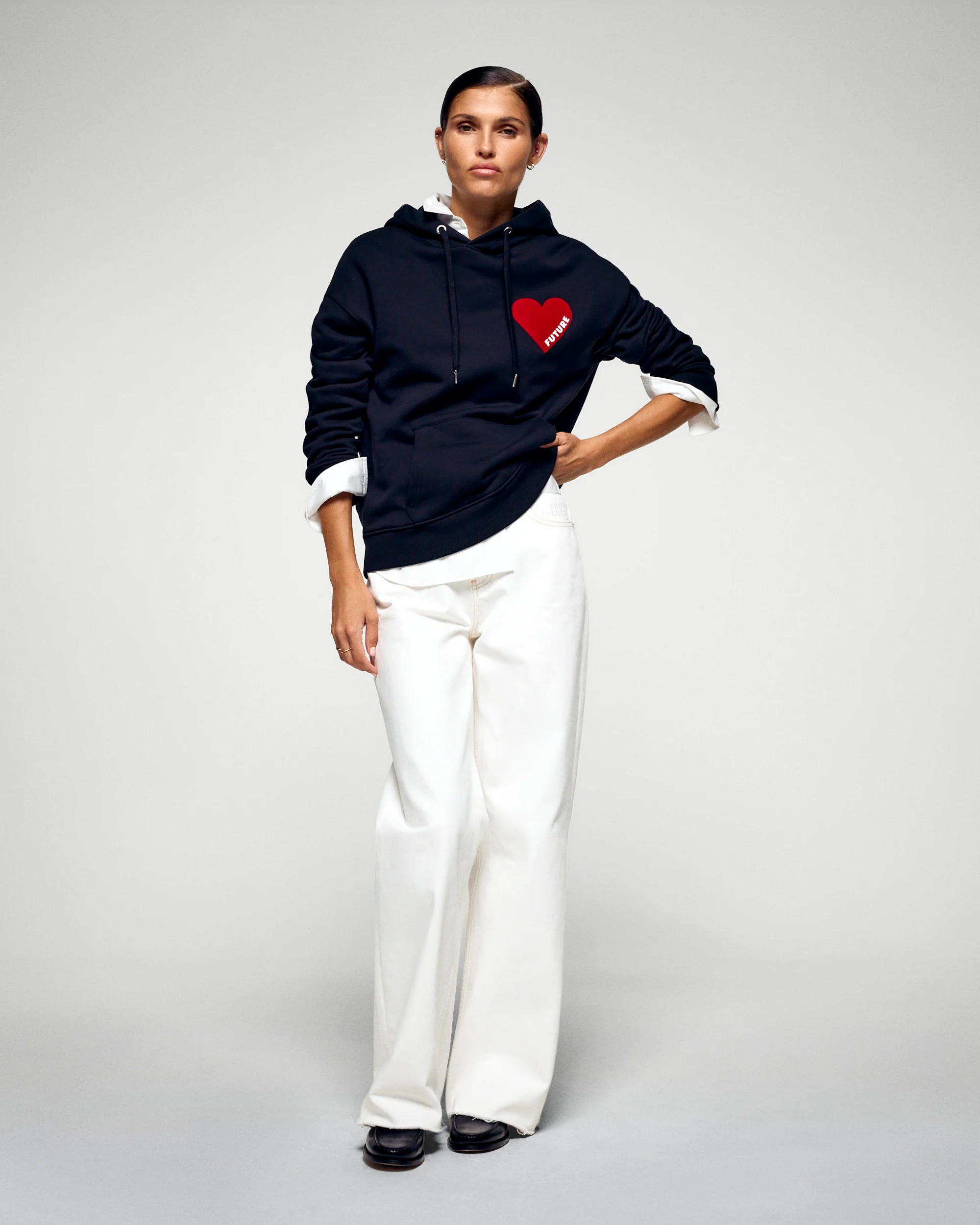 Join the Club with our cotton hoodie sweatshirt. Featuring a drawstring hood, a front pocket and long sleeves, it reveals a flocked "FUTURE" heart on the chest. A must-have piece in the women's wardrobe.