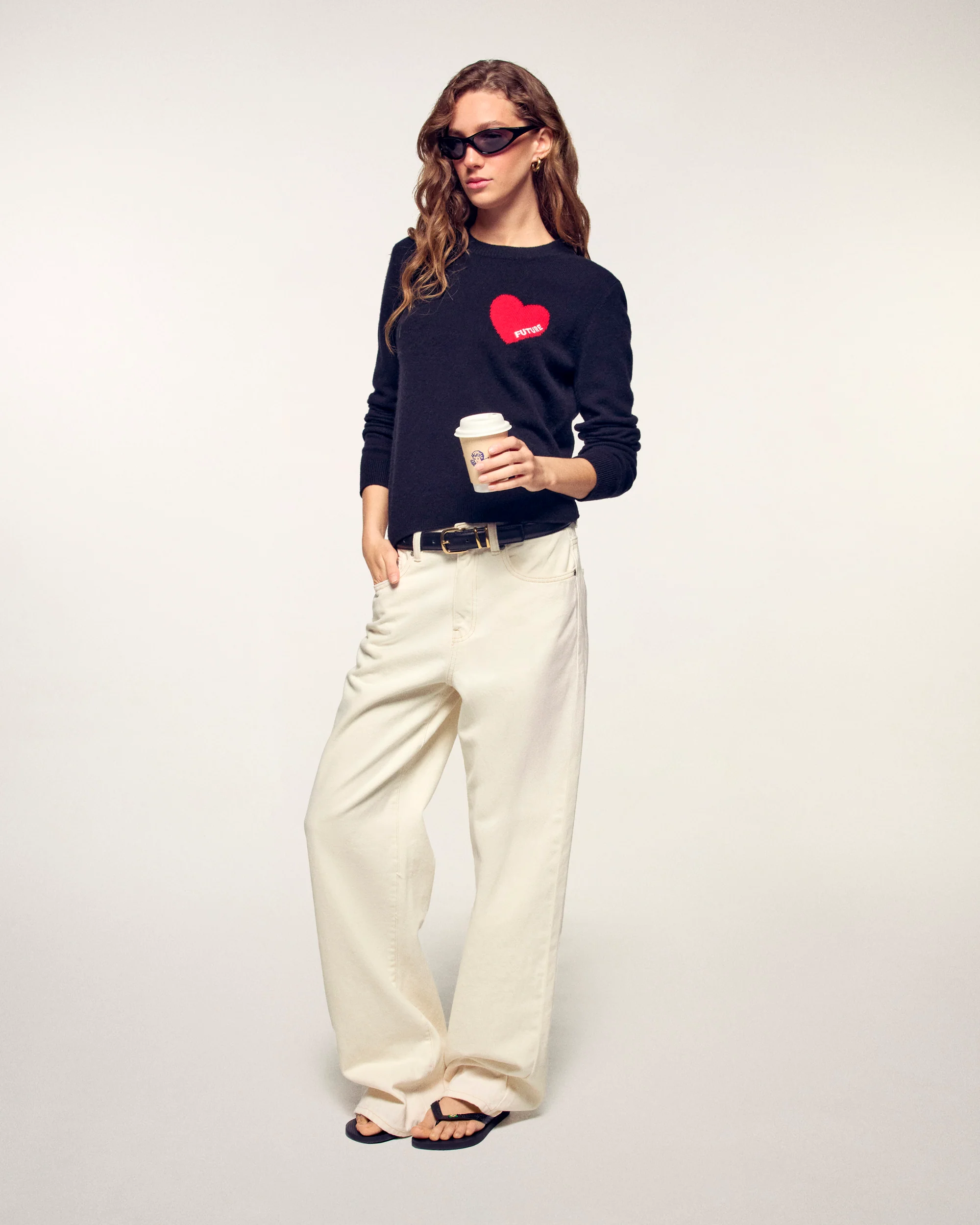 - Intarsia heart embroidered "FUTURE" on the chest