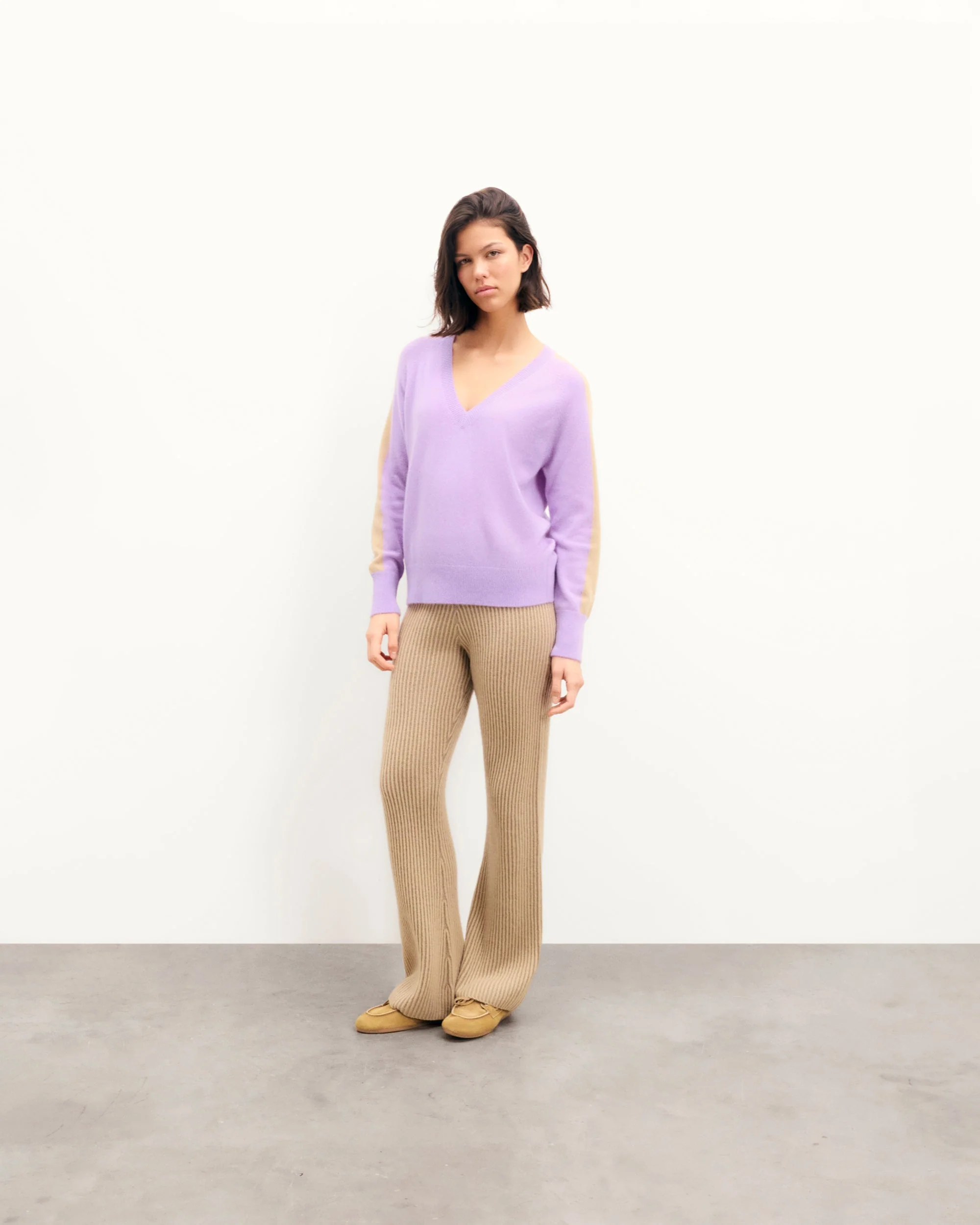 Sweater V-Neck Oversized Stripes (S25 / WOMAN / Fantasy Lilac)
